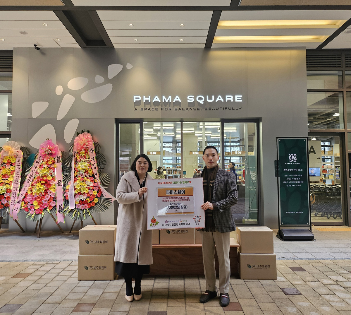 이번 기부는 파마스퀘어가 하남 지역에서 12월 23일 가오픈을 시작한 이후, 지역사회와의 상생을 목적으로 추진된 사회공헌 활동의 일환이다. 가오픈 직후 진행된 이번 나눔을 통해 총 2천만 원 상당의 이시형박사의 닥터루템 ‘두뇌엔PS’ 제품이 기부됐다.