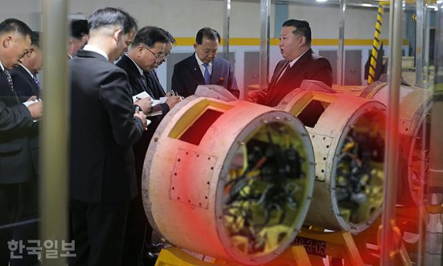 김정은 국무위원장이 중요 군수공업기업소들을 방문해 4분기 미사일 및 포탄 생산 실태를 점검했다고 조선중앙TV가 26일 보도했다. 평양=조선중앙TV·연합뉴스 |