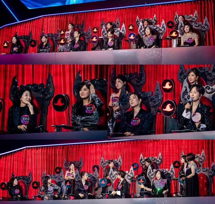 지난 1회에서는 장르 파괴 역대급 톱티어들이 모습을 드러낸 가운데 파격적인 ‘마녀사냥’ 예선전이 시작돼 시선을 강탈했다. 특히 정훈희, 현숙, 장은숙, 최진희, 서주경, 정수라, 유지나, 한혜진, 서지오, 김혜연 등 활동 연차 도합 418년의 기라성 같은 전설 10인으로 구성된 ‘마녀심사단’은 심상찮은 포스로 등장한데 이어 직속 선배다운 냉철하고 살벌한 평가를 내려 현장을 살얼음판으로 만들었다.