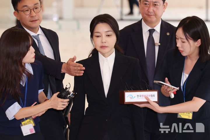 [서울=뉴시스] 사진공동취재단 = 도이치모터스 주가조작 연루 의혹 등을 받는 김건희 여사가 6일 오전 서울 종로구 김건희 특검팀(특별검사 민중기)사무실에 피의자 신분으로 소환되고 있다. 2025.08.06. photo@newsis.com |