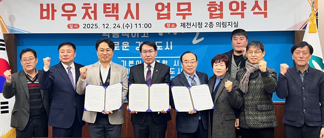 시는 최근 시청에서 제천 청풍호콜센터, ㈜티머니 모빌리티와 '바우처 택시 업무협약'을 체결하고 내년 1월부터 운영에 들어간다고 26일 밝혔다.