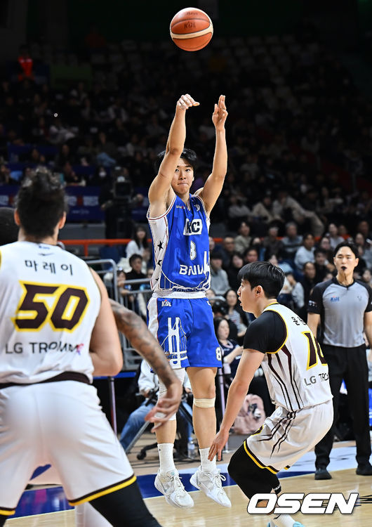 부산 KCC 윤기찬이 창원 LG 윤원상의 마크를 피해 3점슛을 시도하고 있다. 2025.12.26 / foto0307@osen.co.kr