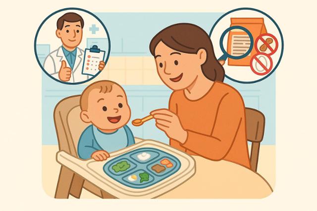 아이에게 음식 알레르기가 의심되면, 먼저 알레르기 전문의에게 가서 정확한 검사를 받으세요. 진단받지 않은 음식은 생후 4~6개월부터 다양하게 조금씩 먹여 보세요. 배식 전 성분표를 꼭 확인하여 알레르기가 있는 음식은 철저히 피해 주세요.