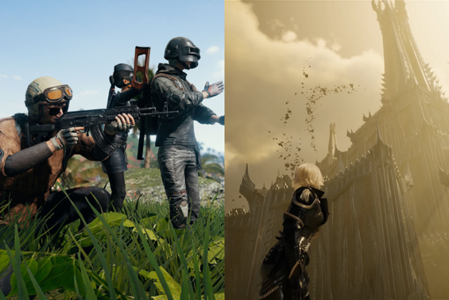 크래프톤의 '배틀그라운드'(왼쪽)와 엔씨의 '아이온2' 속 장면들. 크래프톤·엔씨 제공 |