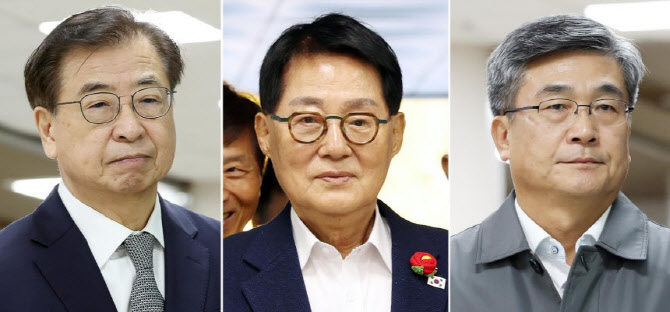 서훈 전 국가안보실장(왼쪽부터), 박지원 전 국정원장, 서욱 전 국방부 장관이 지난달 5일 오전 서울 서초구 서울중앙지방법원에서 열린 ‘서해 공무원 피격 은폐 의혹’ 결심 공판에 출석하고 있다. (사진=뉴스1) |
