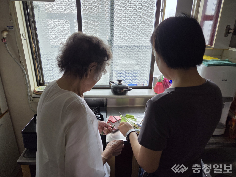 충주시 관계자가 한 노인 가구를 찾아 식사 지원 서비스를 제공하고 있다. |