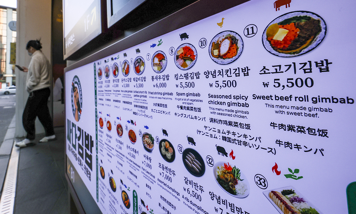 지난 25일 서울시내 분식집에 김밥 가격이 나와있다. 서울 지역 외식 물가가 지난 1년간 꾸준히 오르면서 김밥, 칼국수 등 서민 대표 메뉴의 가격 상승폭이 두드러진 것으로 조사됐다. 뉴시스 |