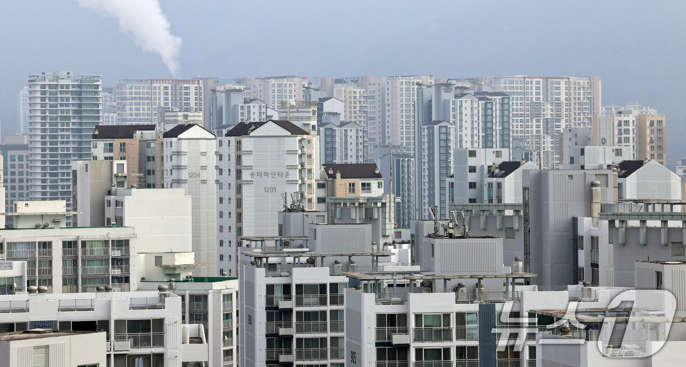 (서울=뉴스1) 구윤성 기자 = 내년 서울 아파트값 상승률은 10·15 부동산 대책 여파로 역대 최고치를 기록한 올해보다는 낮아질 것으로 보이지만 공급 부족 문제가 이어지면서 강남권과 한강벨트 등 상급지를 중심으로 상승세는 계속될 것으로 전망된다. 이와 함께 가격 부담이 커진 영향으로 하향 매수가 늘어나면서, 올해보다 서울 중저가 단지를 중심으로 매매가 활발해질 가능성도 제기된다. 28일 부동산 업계에 따르면 내년 서울 아파트 가격 연간 상승률은 최대 5% 내외가 될 것이라는 관측이 나온다. 이는 한국부동산원 기준 올해 연간 상승률 8.48%보다는 낮은 수준이다. 서울 아파트값은 올해 2월 첫째 주부터 46주 연속 상승세를 이어갔다. 사진은 이날 서울 송파구의 한 아파트 단지. 2025.12.28/뉴스1