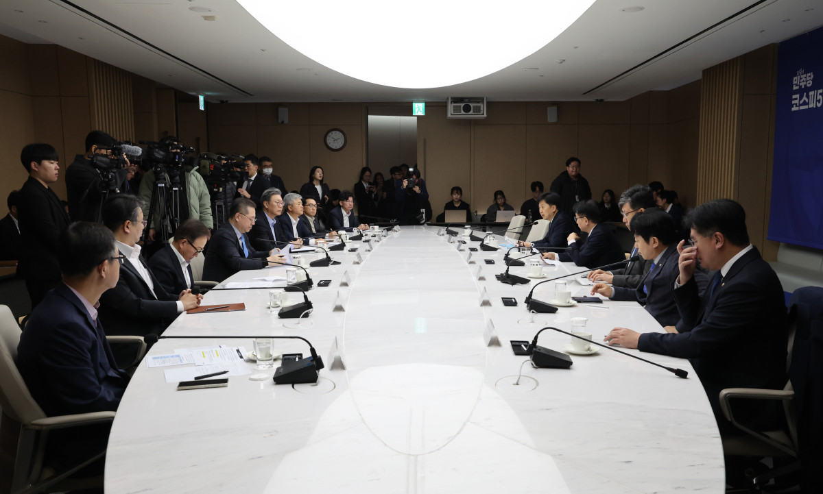 11일 서울 중구 대한상공회의소에서 박일준 대한상공회의소 상근부회장, 더불어민주당 권칠승 경제형벌민사책임합리화TF 단장, 오기형 코스피5000특별위원회 위원장 등 참석하에 열린 더불어민주당 코스피5000특위·경제형벌민사책임합리화TF-경제8단체 간담회가 진행되고 있다. |