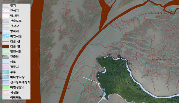 구축한 갯벌정보는 △간석지 △갯골 △간출도로 △양식장 △갯벌 시설물을 비롯해 연안 토지 정보까지 포함하고 있으며, 해양·어업·토지 관리 등 다양한 행정업무와 갯벌 생태계 보전의 기초자료로 활용될 예정이다.