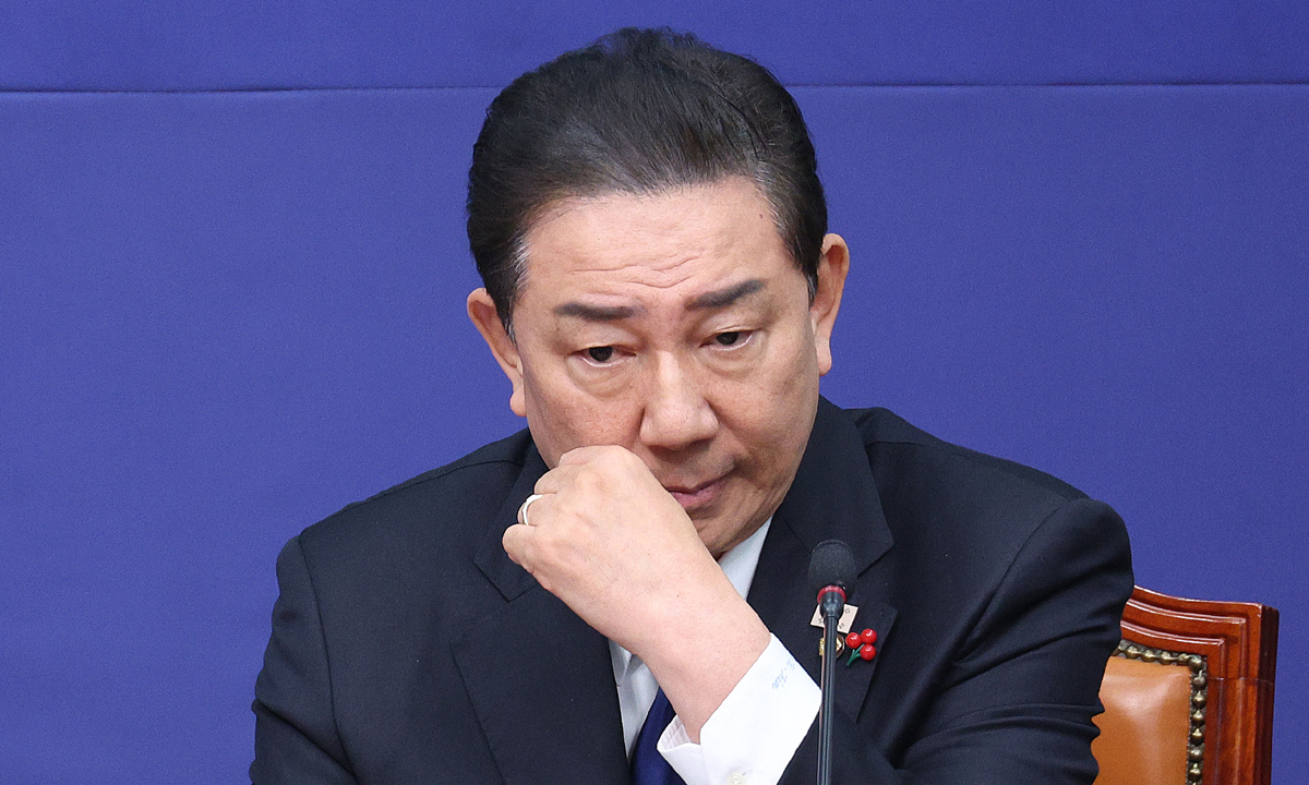 김병기 더불어민주당 원내대표가 24일 서울 여의도 국회에서 열린 최고위원회의에서 생각에 잠겨 있다. 뉴스1 |
