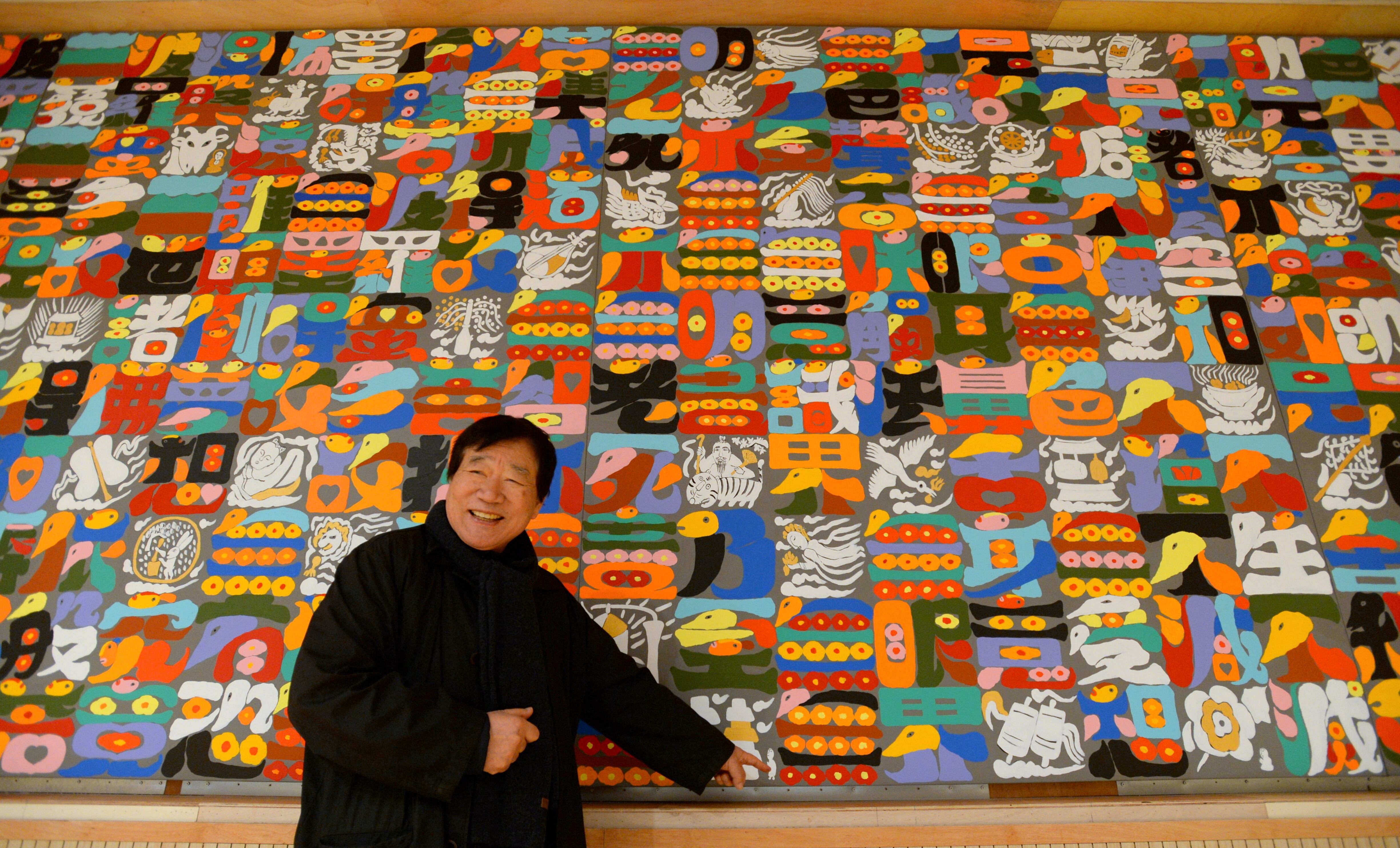 지난 2017년 황영성 화백이 광주광역시 무각사에 걸린 자신의 작품 '반야심경도'를 소개하고 있다. /김영근 기자 |