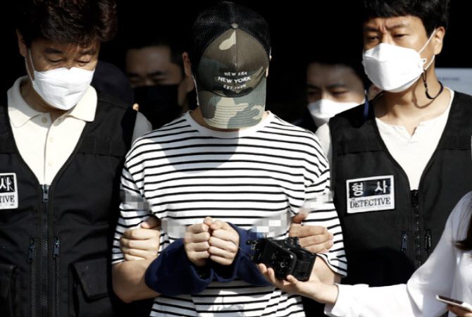 마포 오피스텔 감금 살인사건의 피의자 20대 남성이 지난 2021년 6월 22일 오전 서울 마포경찰서에서 검찰로 송치되고 있다. (사진=뉴시스) |