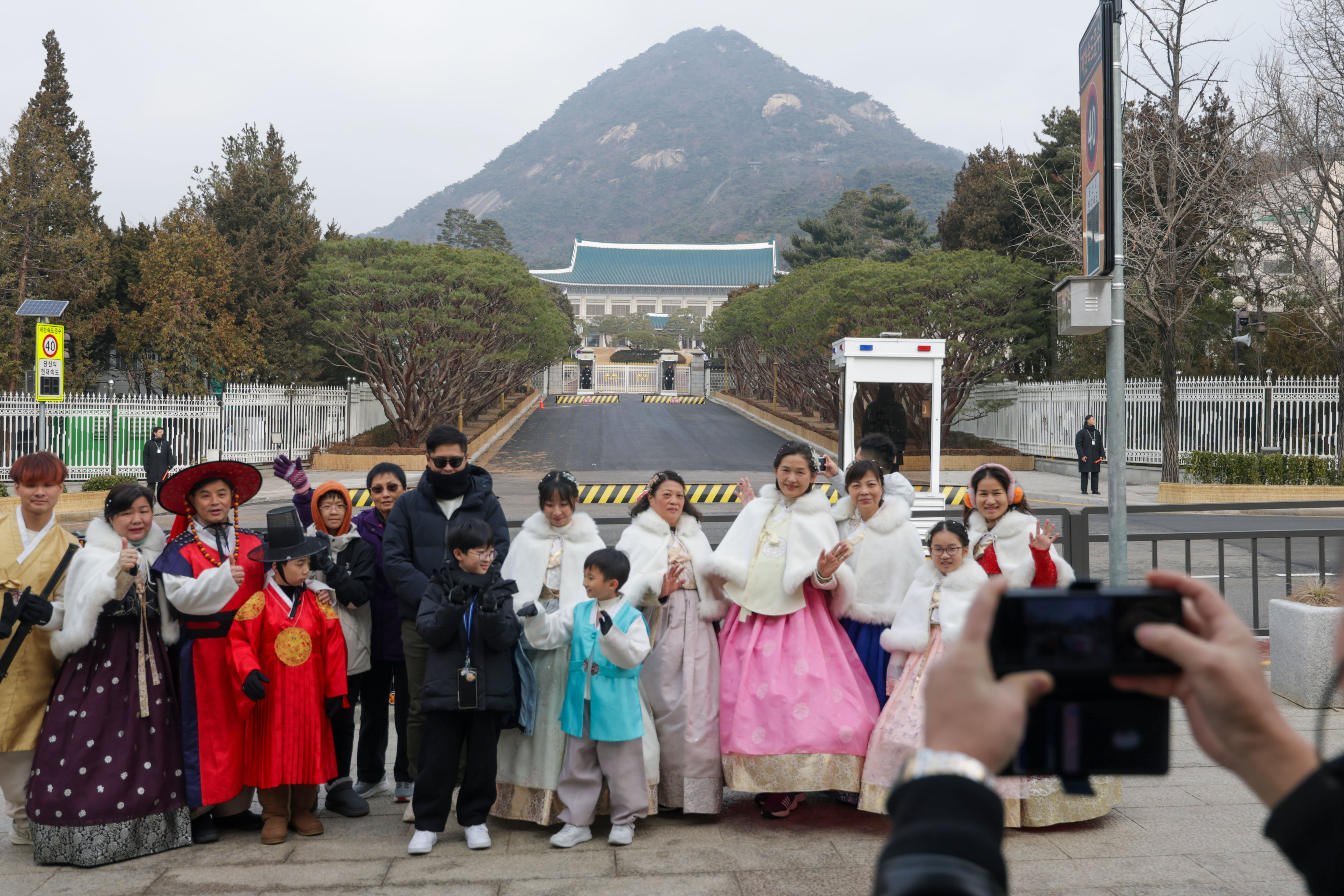 2025년 12월 28일 오전 청와대 앞에서 외국인 관광객들이 기념 사진을 남기고 있다. 윤석열 정부가 이전했던 대통령 집무실을 이재명 대통령이 다시 청와대로 복귀 시키면서, 29일부터 청와대에서 업무를 시작한다. /장련성 |