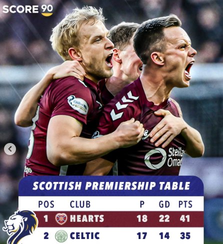 당장 하츠는 2025년을 리그 1위로 마무리하는데 성공했다. 성탄절 기간에 셀틱, 레인저스가 아닌 팀이 리그 선두에 위치한 건 1992년 에버딘 이후 처음 있는 일이다.