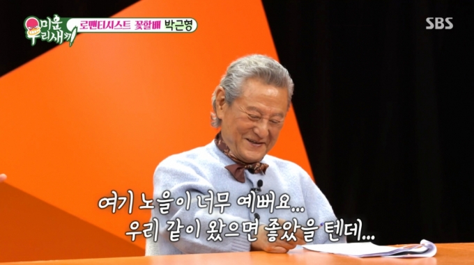 이어 "많은 분이 '꽃보다 할배' 보셨을 거다. 나는 선생님이 관광 명소에 갈 때마다 사모님께 전화하시더라. 보면서 깜짝 놀랐다"며 박근형의 '사랑꾼' 면모를 드러냈다.