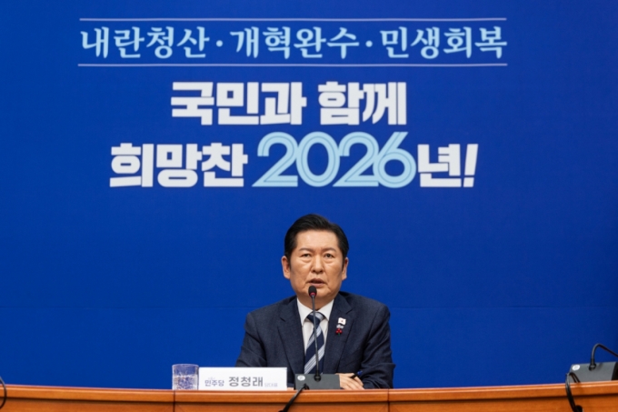 정청래 더불어민주당 대표가 26일 서울 여의도 국회에서 취임 후 열린 첫 공식 기자회견에서 발언하고 있다. /사진=뉴스1 /사진=(서울=뉴스1) 이승배 기자 |