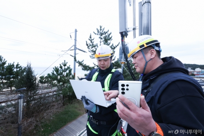 강한 바닷바람에 뺨이 얼얼해지는 강원 강릉시 정동진 해변. LG유플러스 강릉무선파트 직원들은 후드티와 누빔조끼 등 간편한 작업복에 약 2㎏에 달하는 안전장비를 착용하고 5톤트럭을 오르내렸다. 연말연시 트래픽 폭증에 대비해 이동식 기지국을 전진배치한 후 이용자의 휴대전화가 적정신호를 수신하는지, 데이터 속도가 안정적으로 유지되는지 점검하고 안테나 각도를 미세조정하는 작업이다.