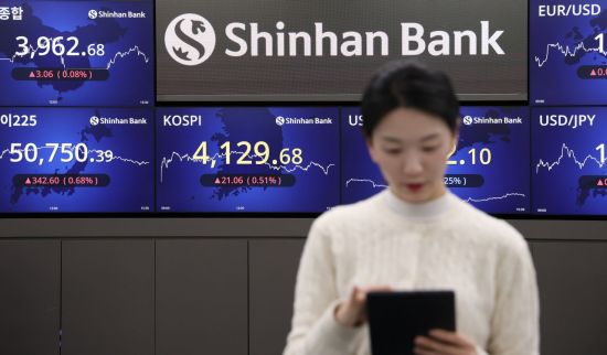 지난 26일 서울 중구 신한은행 딜링룸 현황판에 코스피 지수 등이 표시돼 있다. 신한은행 |