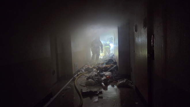 불이 난 세대에는 폐기물이 가득 쌓여 소방관들의 진입을 어렵게 했다고 알려졌다. 소방 당국은 폐기물을 제거하면서 조금씩 진입하는 방식으로 진화 작업을 벌였다.