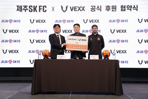 (서울=연합뉴스) 배진남 기자 = 프로축구 제주 SK는 29일 브이엑스(V-EXX)와 서울 강서구 메이필드호텔에서 공식 용품 후원 계약을 체결했다.