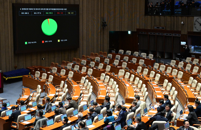 지난 24일 국회에서 열린 본회의에서 정보통신망 이용촉진 및 정보보호 등에 관한 법률 일부개정법률안(대안)이 가결되고 있다./이병화 기자 |