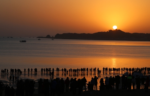 왜목마을에서는 가늘고 길게 뻗어 나간 서해의 독특한 지형 덕분에 바다 위로 떠오르는 새해의 태양을 감상할 수 있다.