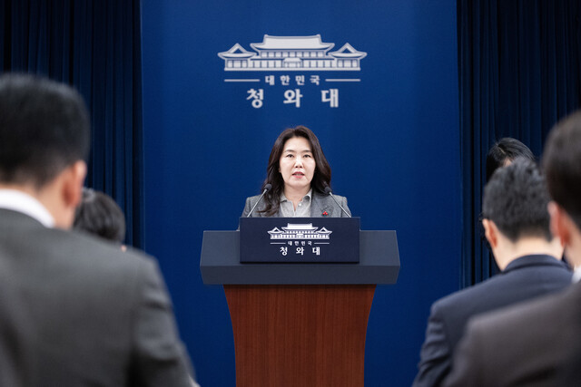 강유정 청와대 대변인이 29일 춘추관 브리핑룸에서 이재명 대통령의 1330일 만의 청와대 출근 관련 브리핑을 하고 있다. 대통령실사진기자단 |