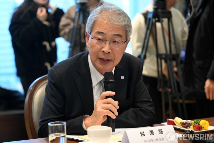 [서울=뉴스핌] 최지환 기자 = 임종룡 우리금융그룹 회장이 17일 오후 서울 영등포구 산업은행 별관에서 열린 '국민성장펀드의 성공을 위한 금융기관간 업무협약식'에서 인사말을 하고 있다. 2025.11.17 choipix16@newspim.com |