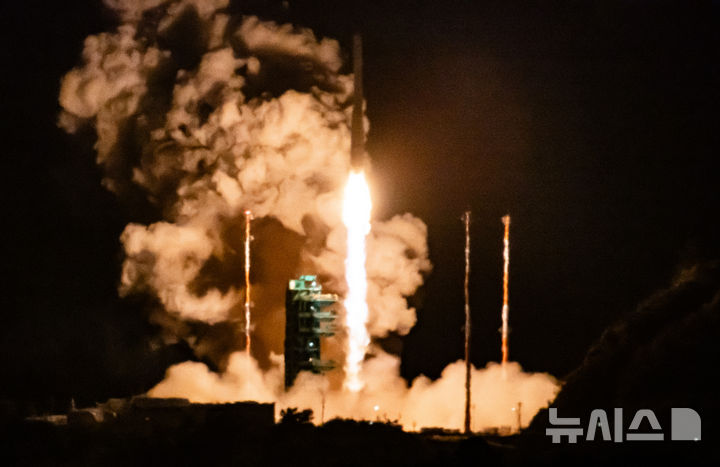 [여수=뉴시스] 황준선 기자 = 한국형 발사체 누리호가 27일 새벽 전남 고흥군 나로우주센터에서 발사되고 있다. 민간 기업인 한화에어로스페이스가 기술 이전을 통해 발사체 제작 전 과정을 주관한 누리호 4호기는 오로라·대기광 관측과 우주 자기장·플라스마 측정 등을 위한 위성 13기가 탑재됐다. 2025.11.27. hwang@newsis.com |