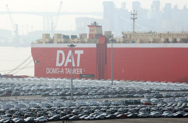 사상 최초로 연간 수출액 7,000억 달러를 달성한 29일 경기 평택항 야적장에 수출용 차량이 세워져 있다. 평택=뉴스1 |