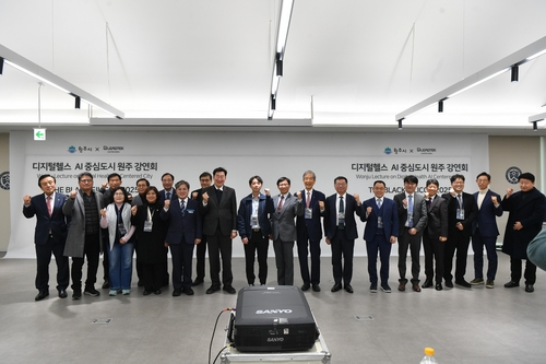 (원주=연합뉴스) 임보연 기자 = 원주시는 29일 연세대학교 미래캠퍼스에서 '디지털헬스케어 AI 중심도시 원주 강연회'를 개최하고, AI·디지털헬스케어 산업 협력을 위한 업무협약을 했다.