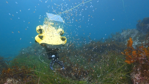(강원 고성=연합뉴스) 유형재 기자 = 한국수산자원공단은 강원 고성군 거진지역에서 수중 드론을 이용해 대문어 부화 유생 1만 마리를 방류했다고 29일 밝혔다.