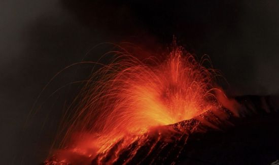 분출은 잠잠해지는 듯하다가는 듯하다가 오후 3시께 재차 거세졌다. 용암은 400∼500m 높이까지 치솟았고 연기·화산재 기둥 높이는 10㎞에 달했다. 두 번째 격렬한 용암 분출은 약 45분간 계속됐다고 INGV는 전했다. 이번 분화는 28년 만에 가장 격렬했다고 INGV는 평가했다.
