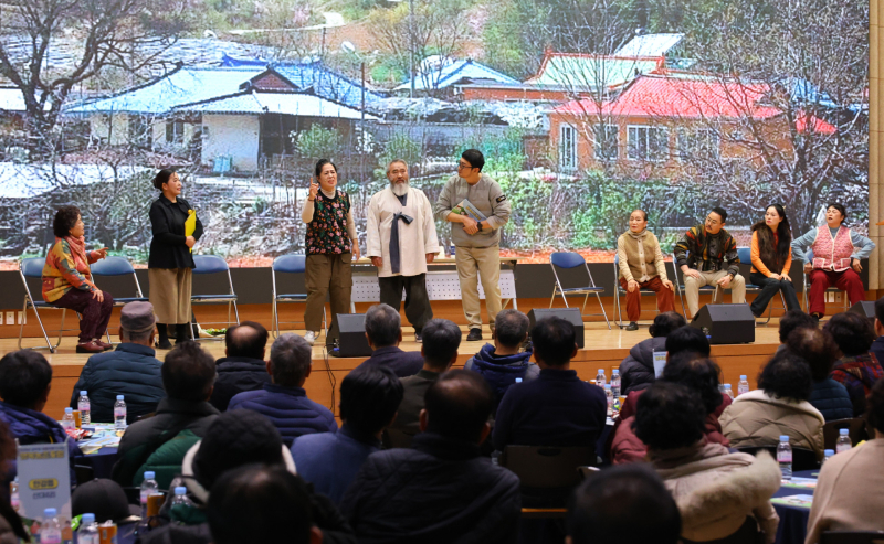 29일 경주시청 알천홀에서 열린 행복농촌포럼에서 에밀레극단이 마을만들기 사업을 주제로 연극을 선보이고 있다. [사진=경주시] |