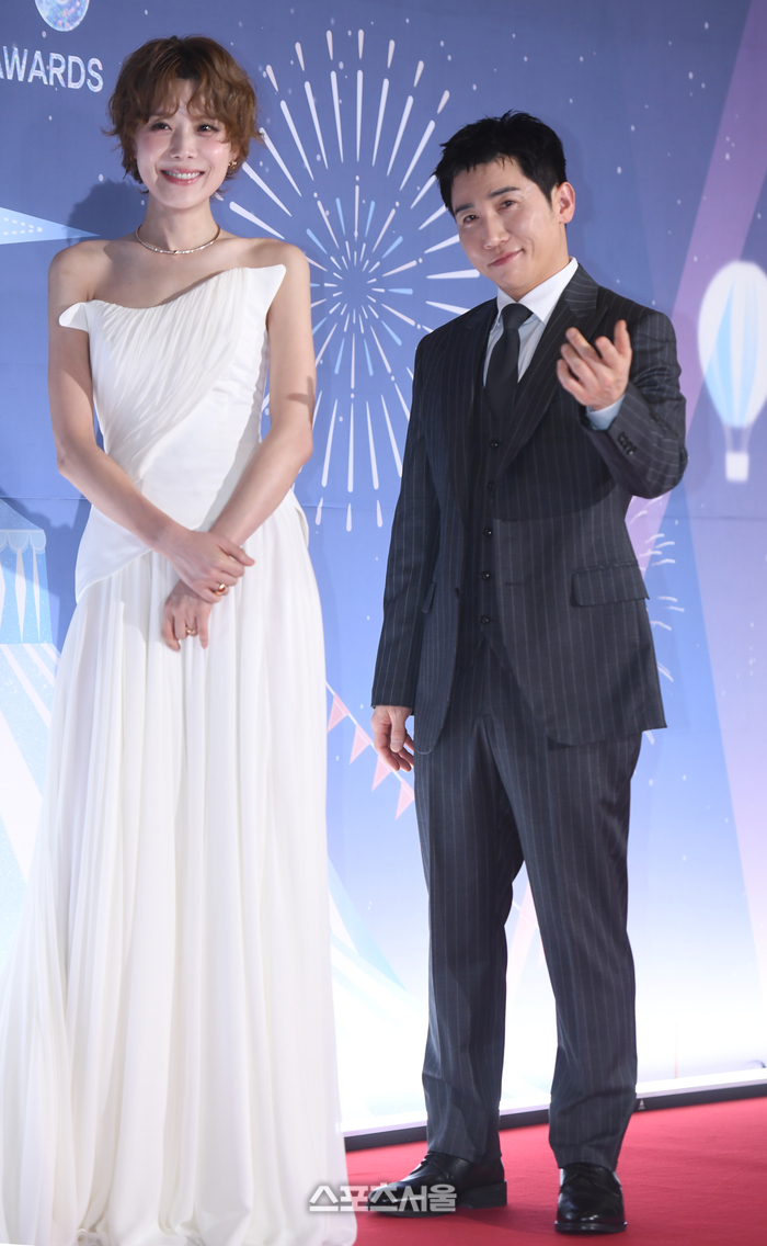 장도연과 유세윤이 29일 서울 상암동 MBC 미디어센터에서 열린 2025 MBC 방송연예대상 포토월에서 포즈를 취하고 있다.