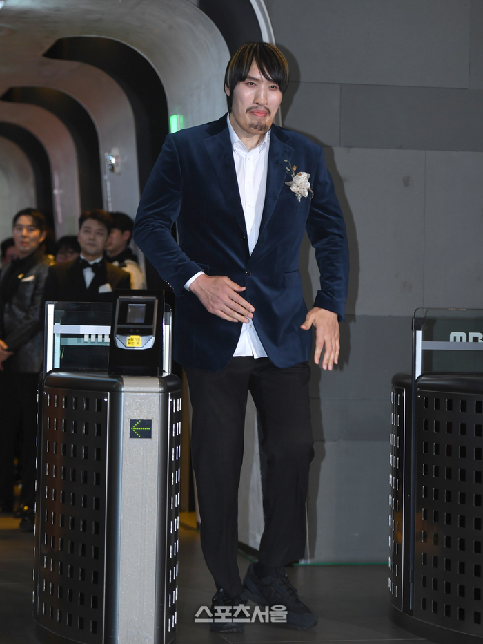 최홍만이 29일 서울 상암동 MBC 미디어센터에서 열린 2025 MBC 방송연예대상 포토월로 이동하고 있다.
