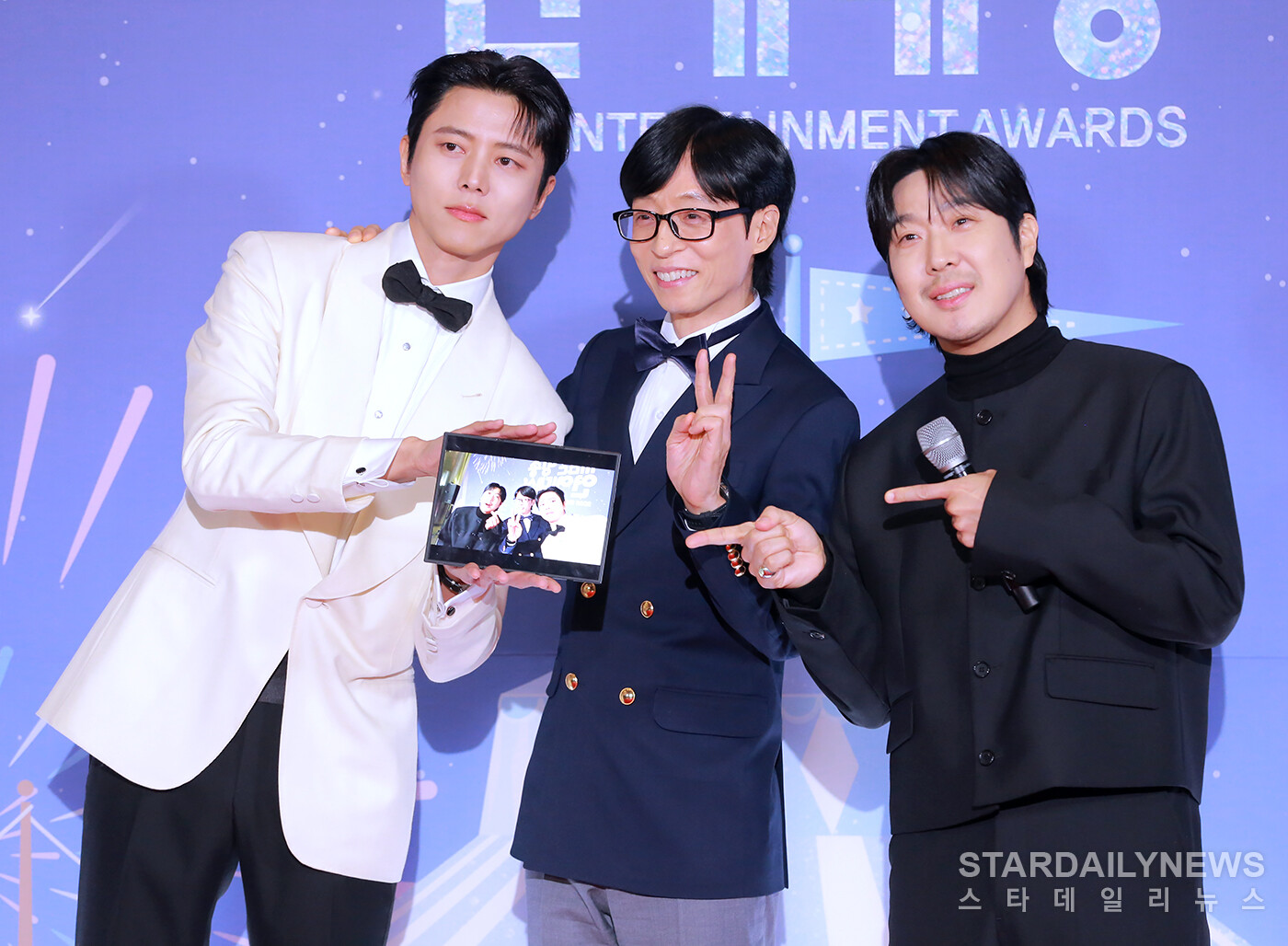 [스타데일리뉴스=박병준 기자] 주우재, 유재석, 하하가 29일 오후, 서울 마포구 MBC 미디어센터에서 열린 '2025 MBC 방송연예대상' 사전 레드카펫 행사에 참석했다.