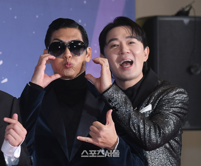 박준형과 붐이 29일 서울 상암동 MBC 미디어센터에서 열린 2025 MBC 방송연예대상 포토월에서 포즈를 취하고 있다.