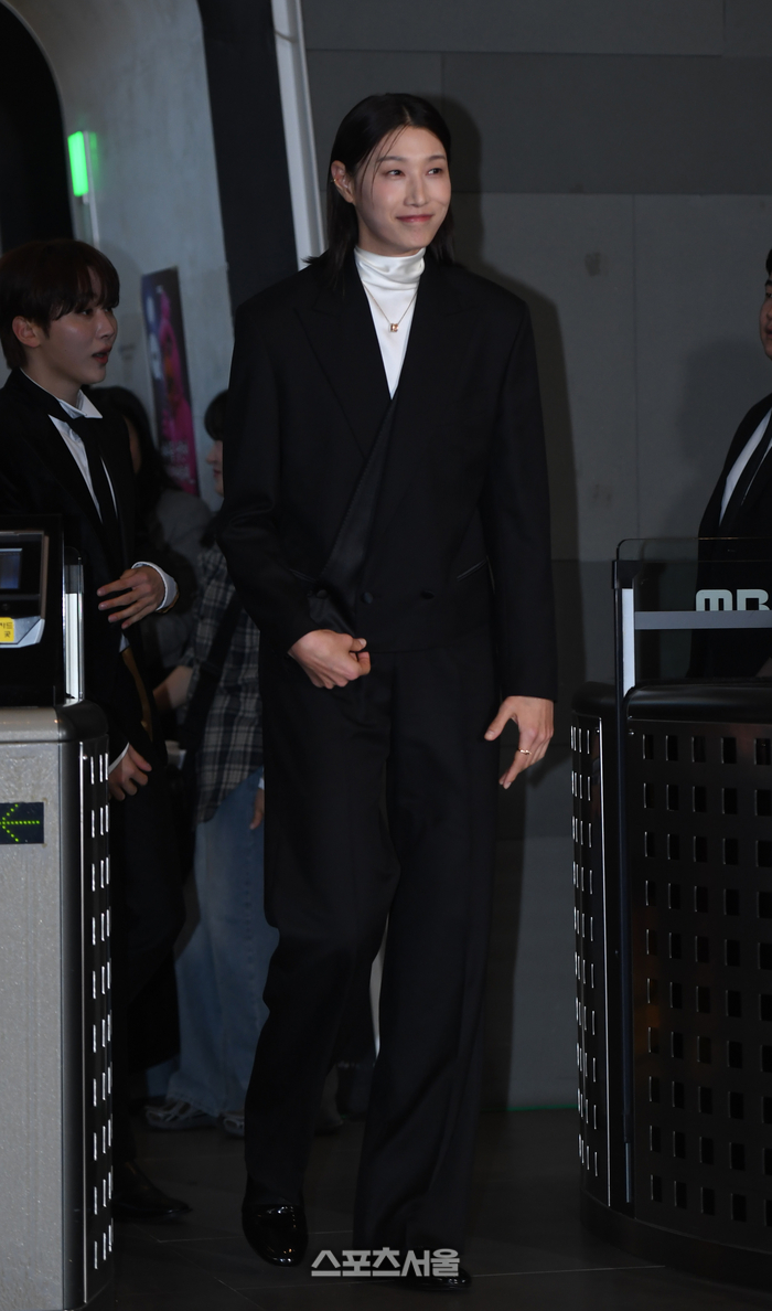 김연경이 29일 서울 상암동 MBC 미디어센터에서 열린 2025 MBC 방송연예대상 포토월로 이동하고 있다.