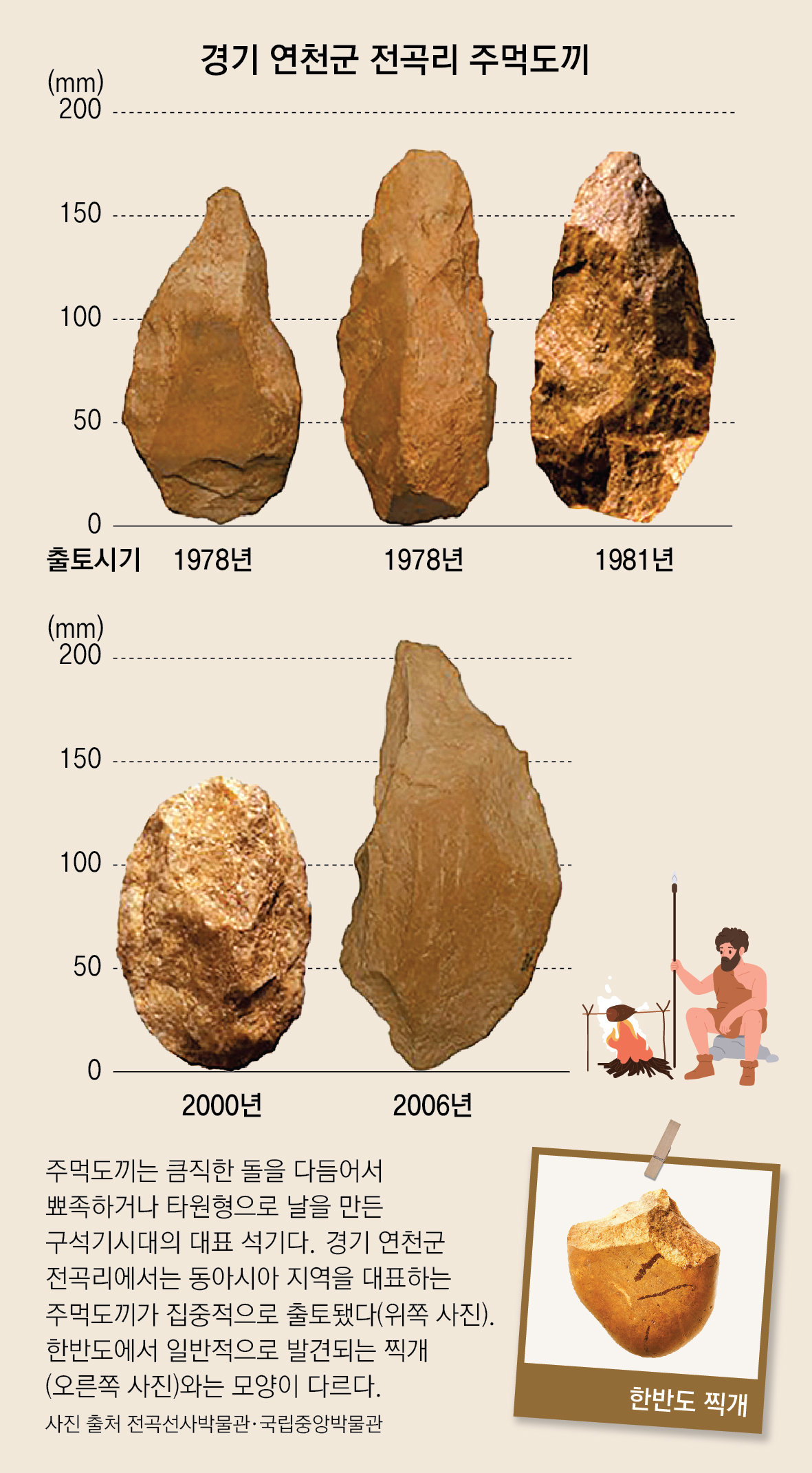 전곡리 주먹도끼 이후 한국을 포함한 동아시아 전역에서 수많은 구석기시대 발굴이 이뤄졌다. 남한에서만 수백 개의 구석기 유적이 발굴됐지만, 주먹도끼는 중부 내륙이나 영·호남 지역에서 일부 발견됐을 뿐 그 수도 매우 적다. 국가도 없었던 30만∼20만 년 전에 사람들은 왜 이렇게 좁은 지역에서만 주먹도끼를 집중적으로 사용했을까.