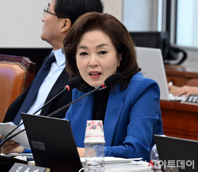 김민전 국민의힘 의원이 2024년 국정감사에서 질의하고 있는 모습이다. /송의주 기자 |