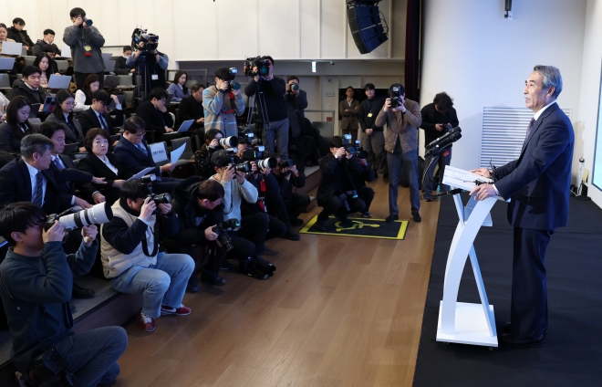 민중기 특별검사가 29일 서울 종로구 KT 광화문빌딩 웨스트에서 특검 최종 수사 결과를 발표하고 있다. 이날 특검팀은 김건희 여사 관련 각종 의혹에 대한 수사 결과 윤석열 전 대통령 부부를 포함해 66명을 재판에 넘겼다고 밝혔다. 뉴시스 |