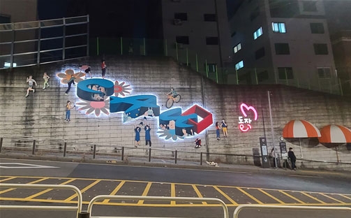서울 동작구는 중앙대 후문 일대 노후 옹벽에 조형물과 경관 조명을 설치하는 경관개선 사업을 완료했다고 29일 밝혔다.
