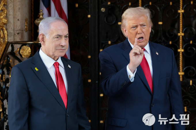 트럼프 대통령은 29일(현지 시간) 플로리다주 웨스트팜비치에 위치한 자신의 마러라고 리조트에서 베냐민 네타냐후 이스라엘 총리를 맞이하며 취재진에게 "이란이 다시 전력을 키우려 하고 있다는 얘기를 듣고 있다"며 "만약 그렇다면 우리는 그들을 눌러야 한다. 아주 강하게 타격할 것"이라고 말했다.