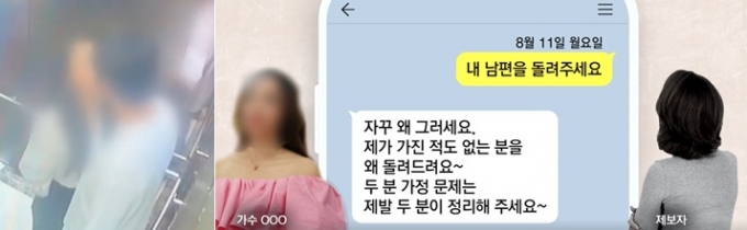 남편은 해당 가수 행사에 동행하기도 했다. 두 사람 관계를 친구 사이로 보기 어려웠던 A씨는 지난 3월 여성에게 물어봤다. 여성은 남편과 친구 사이라고 주장하며 "이런 식으로 계속 연락하면 소속사 통해서 고소하겠다"고 말한 것으로 전해졌다.