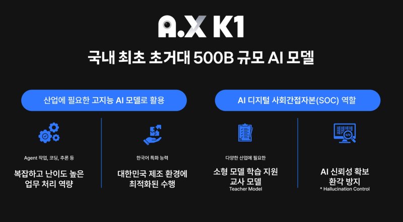 SK텔레콤 정예팀의 초거대 AI 모델 'A.X K1' 설명 이미지. SK텔레콤 제공 |