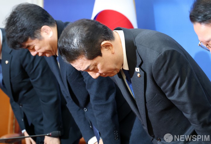 [서울=뉴스핌] 정일구 기자 = 김병기 더불어민주당 원내대표가 30일 오전 서울 여의도 국회에서 열린 원내대책회의에서 원내대표직 사퇴 의사를 밝힌뒤 고개 숙여 인사하고 있다. 2025.12.30 mironj19@newspim.com |