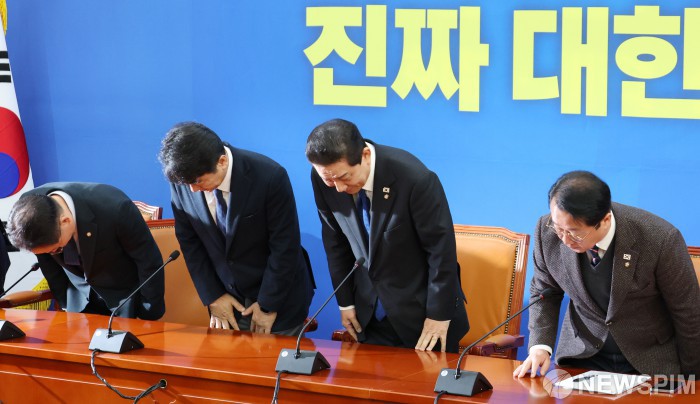 [서울=뉴스핌] 정일구 기자 = 원내대표직 사퇴 의사를 밝힌 김병기 더불어민주당 원내대표가 30일 오전 서울 여의도 국회에서 열린 원내대책회의에서 인사하고 있다. 2025.12.30 mironj19@newspim.com |