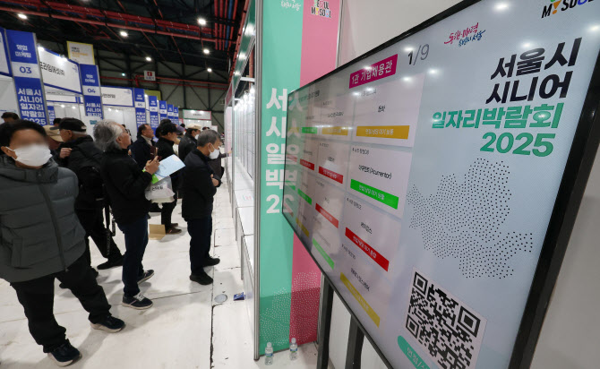 11월18일 서울 강남구 대치동 세텍에서 열린 ‘서울시 시니어 일자리박람회 2025’를 찾은 구직자들이 채용공고 게시대를 살펴보고 있다.(사진=연합뉴스) |